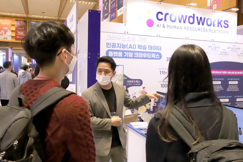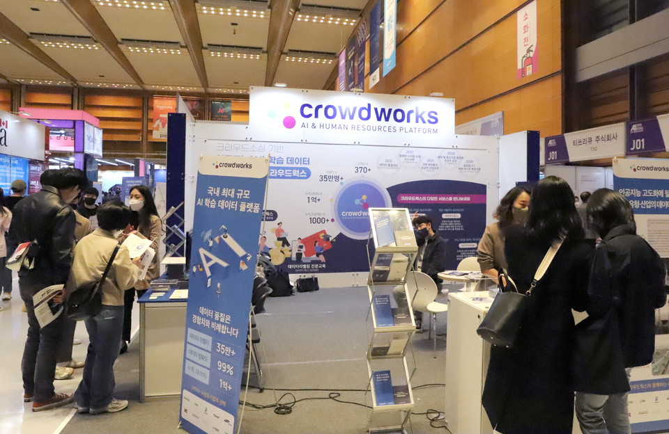 AI 학습 데이터 플랫폼 기업 ▷크라우드웍스(대표 박민우)는 지난해 진행된 국제인공지능대전에서 인공지능 기반 솔루션을 제공하는 주요 고객사와 함께 공동 부스를 마련하여 큰 관심을 받은 바 있다.