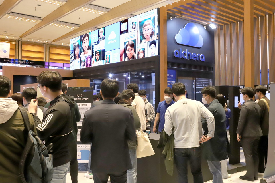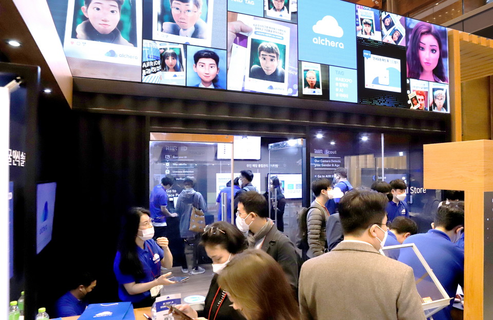 국내 최초 인공지능 얼굴인식 기업으로 美캘리포니아 산불 감지 시스템 실증사업을 진행하고 있는 ▷알체라(대표 황영규)는 이번 전시를 통해 일상 속으로 성큼 다가온 AI 기술들을 소개하고 'AI 스토어(무인매장)'와 매장 입구부터 출구까지 동선을 따라 출입관리 솔루션 ‘에어패스(AIIR PASS)’, 통합관리 모니터링 솔루션 ‘에어스카우트(AIIR Scout)’, 신분증 확인 솔루션 ‘에어아이디(AIIR ID)’, 얼굴인식 페이먼트 시스템 ‘페이스 SDK’를 참관객이 직접 체험해 볼 수 있었다.