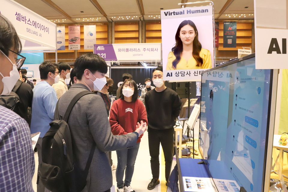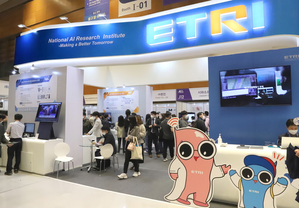 한국전자통신연구원(원장 김명준. 이하, ETRI)은 최신 인공지능 관련 연구성과와 AI 관련 기술을 전시, 기술이전 및 사업화에 적극 나섰다. 전시기간 중 공개한 주요 기술은 다자간 회의 및 강의 음성인식 기술, AI 마스크 착용자 얼굴정보 인식 기술, 청각장애인을 위한 아바타수어 기술, 대화형 치안 민원 응대 기술, 독거노인 생활패턴 인식 기술 등이다.