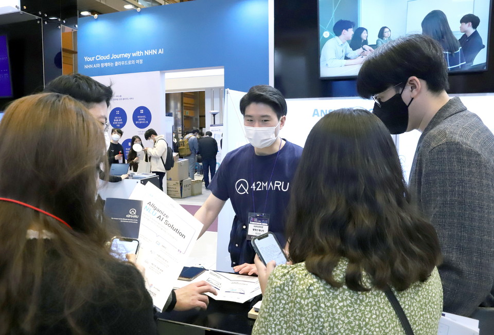 이번 AI EXPO KOREA에는 국내 최고의 인공지능 기업인 네이버·네이버클라우드를 필두로 게임을 넘어, 생활 속의 인공지능 기업으로 우뚝선 NHN·NHN클라우드, 국내 최초의 인공지능 얼굴인식 기업에서 지난해 상장을 기점으로 글로벌 AI 기업으로 거듭난 알체라, 그래프코어(Graphcore), 메가존클라우드, 클루커스, 에이모, 크라우드웍스, 텐센트(Tencent), 에펜(APPEN), ETRI, 우경정보기술, 메디컬아이피 등이 참가해 빈자리 없이 가득 메워진 전시장에는 사흘 내내 참관객들의 폭발적인 인공지능 열기를 뿜어냈다.